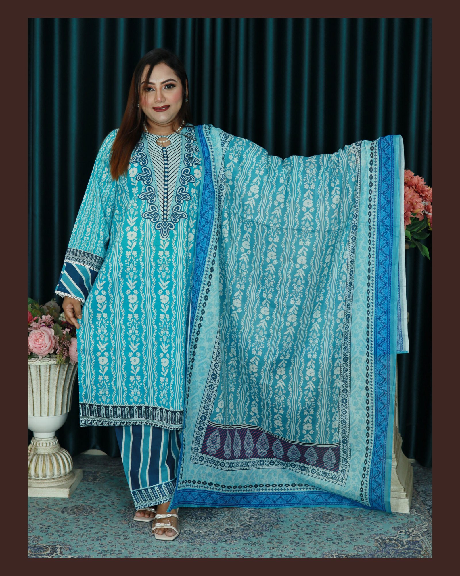আনস্টিচ পিউর কটন থ্রি-পিস- জামা+ ওড়না+ প্যান্ট